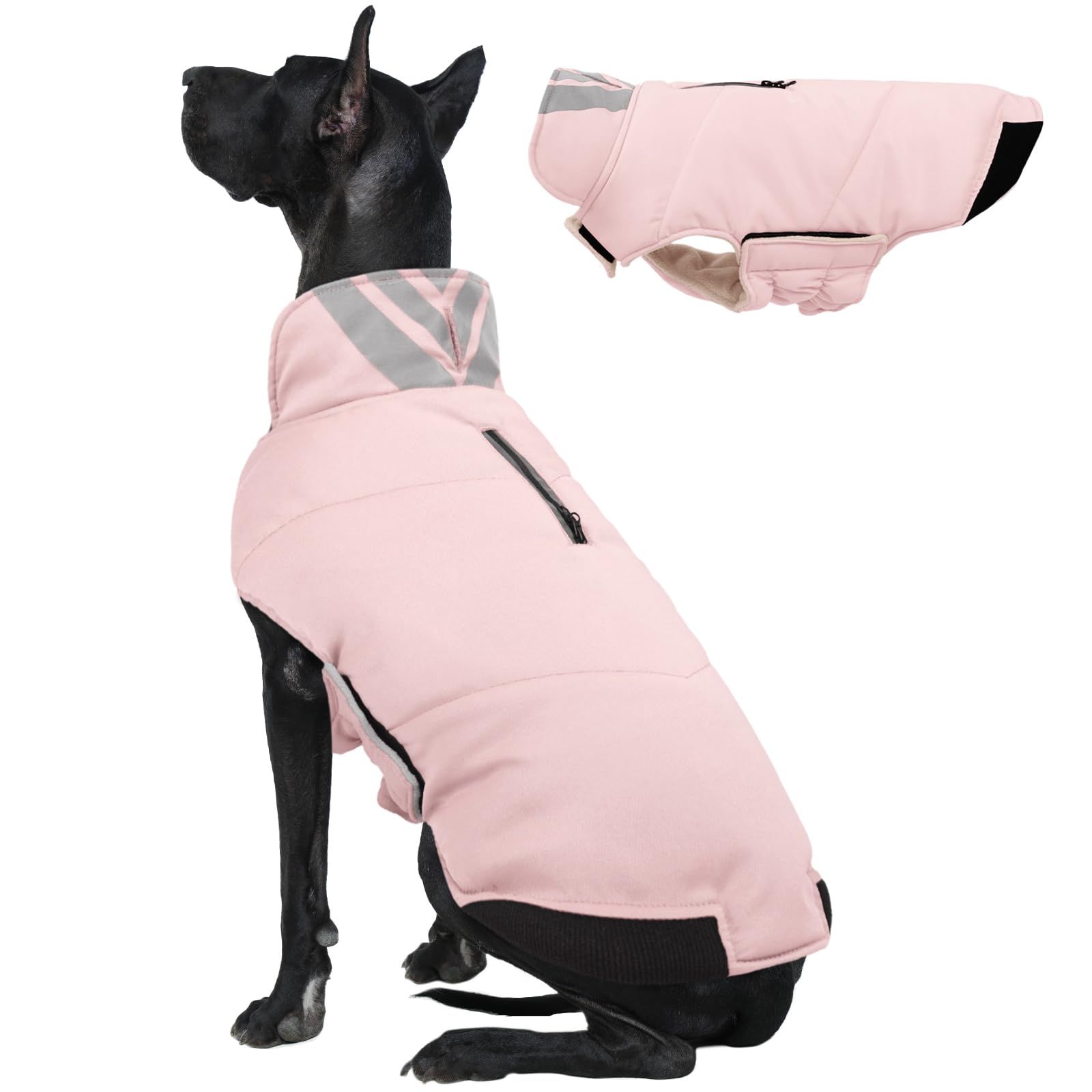 • Reflective Dog Coat for Safety at Night: Safety comes first! This reflective dog coat has bright stripes on the turtleneck collar and along the back zipper for better visibility in low light. Ideal for evening walks, winter hikes or travel, giving peace of mind to pet parents. The reflective details not only protect but also add a sporty, stylish look to your dog’s winter dog coat