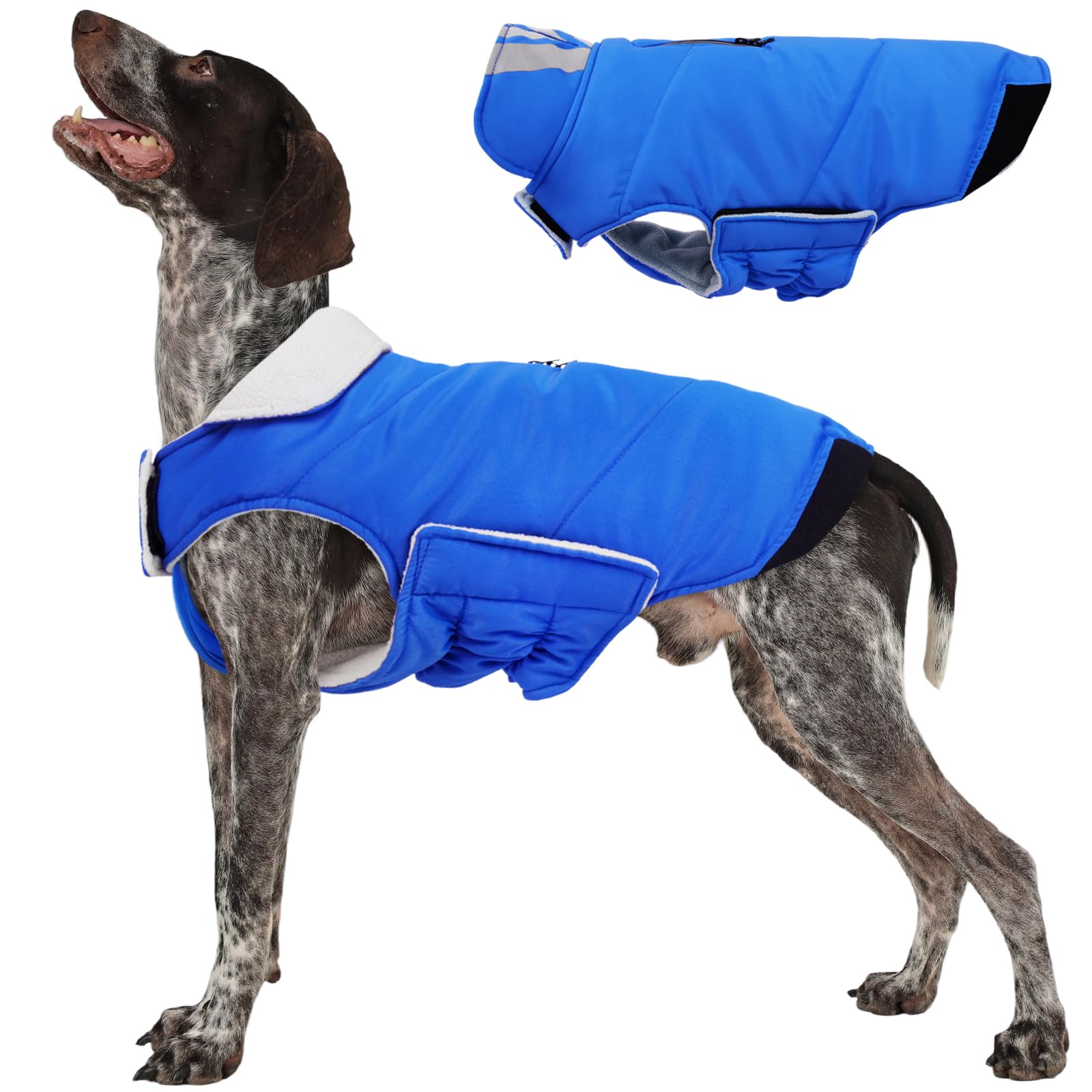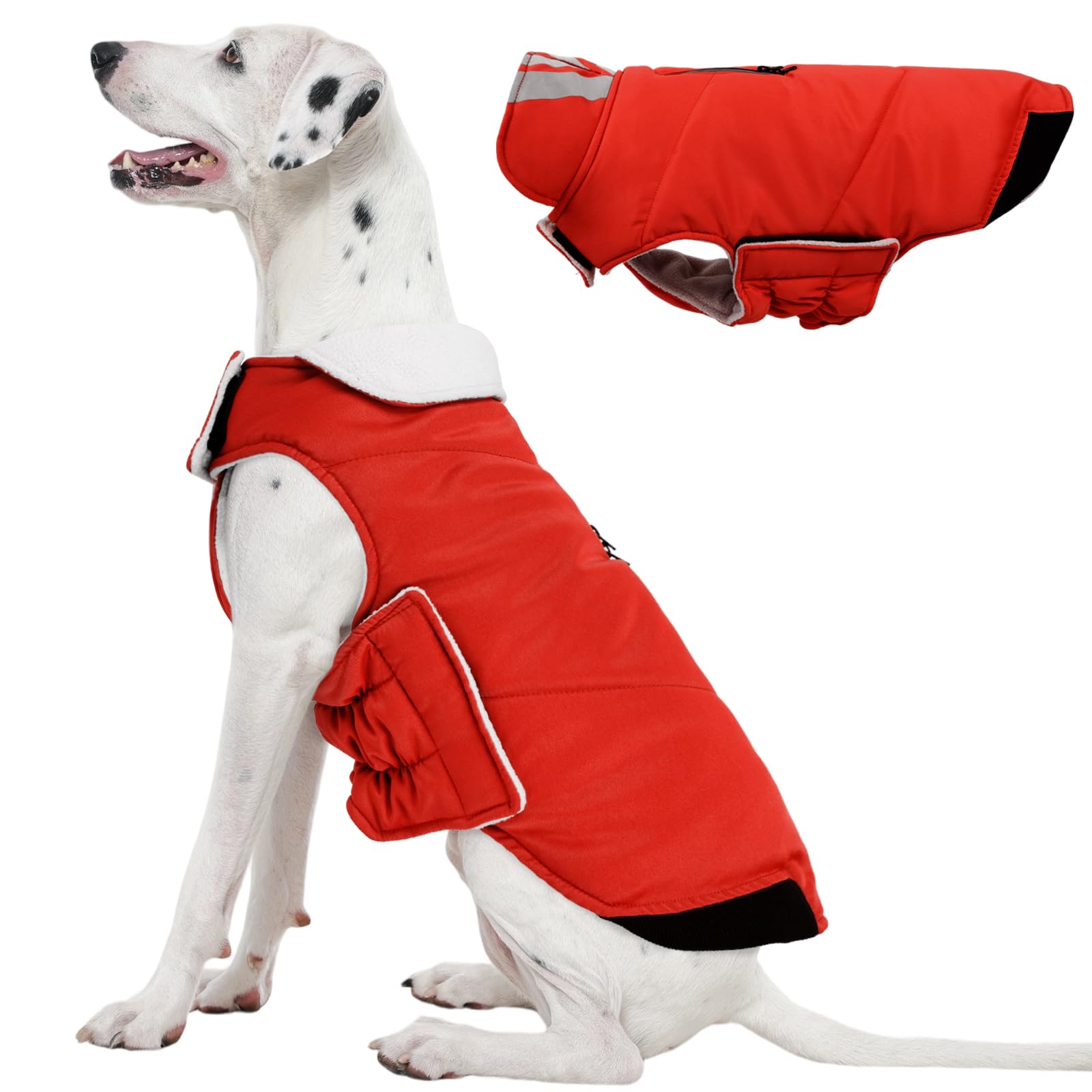 Dog Coat Cold Weather Reflective Waterproof Dogs Jacket with Warm Fleece Lining, Turtleneck Dog Winter Coat with Zipper
