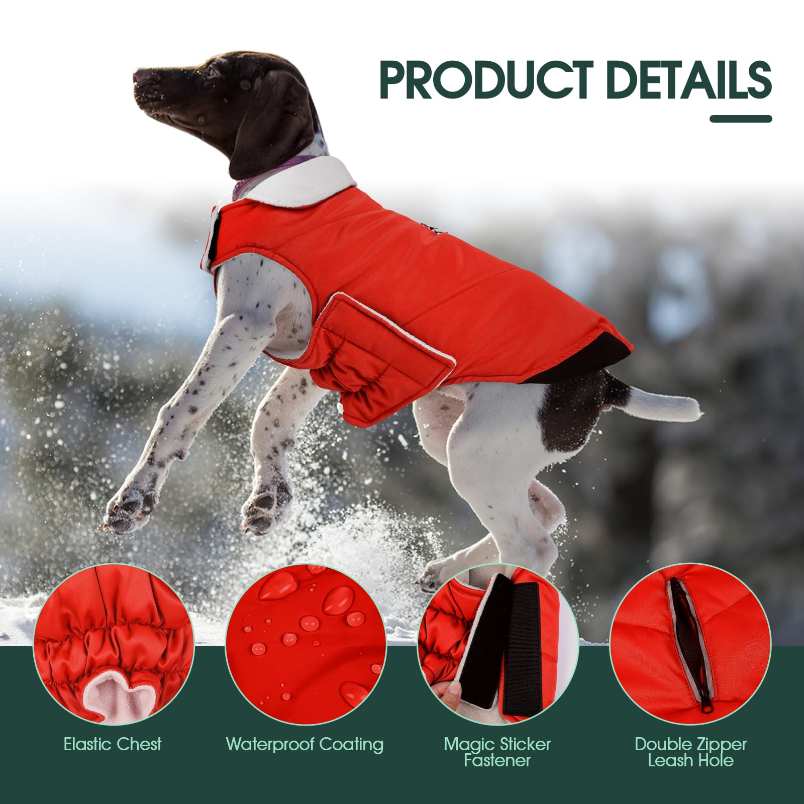 • Dog Coat with Harness Hole & Easy Zipper Closure: Thoughtfully designed dog jacket with harness built in allows quick leash attachment without sacrificing warmth. Compatible with most harnesses, this winter coat for dogs is a practical choice for everyday wear, travel, and outdoor activities, this dog snow jacket offers a practical solution for pet parents who want an easy-to-use, secure and comfortable waterproof dog jacket for their furry friends