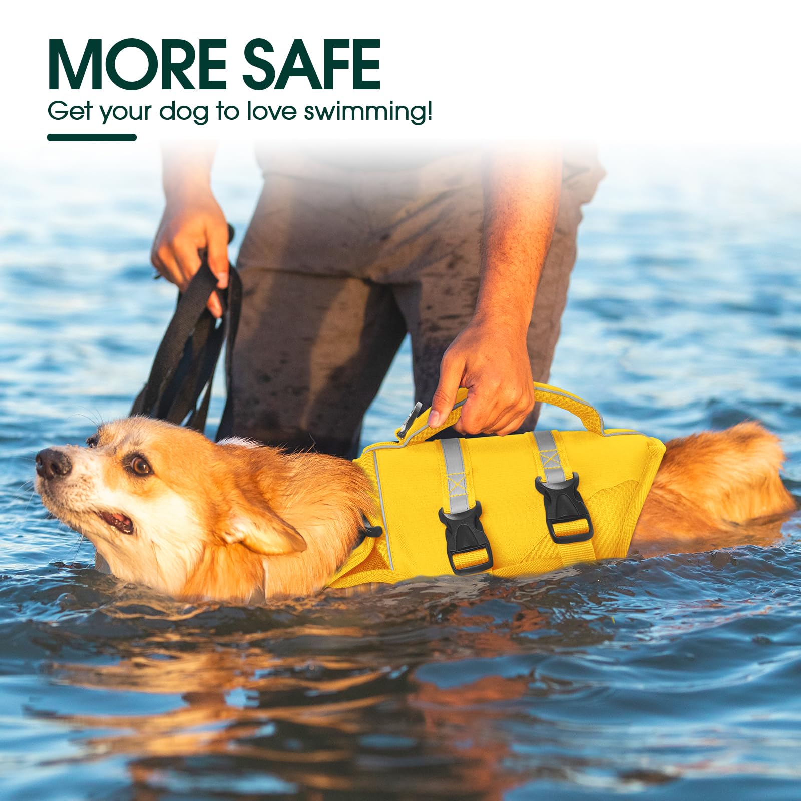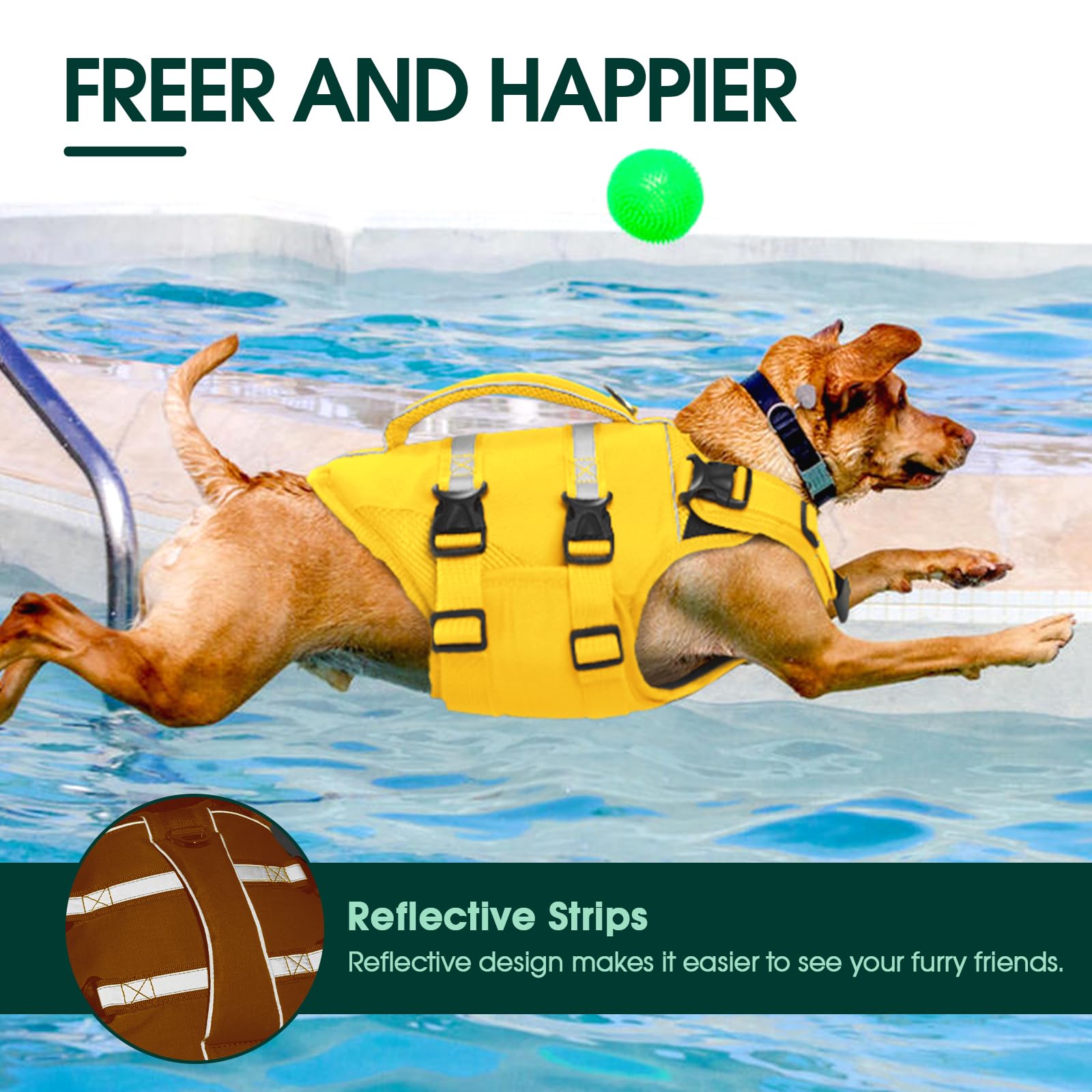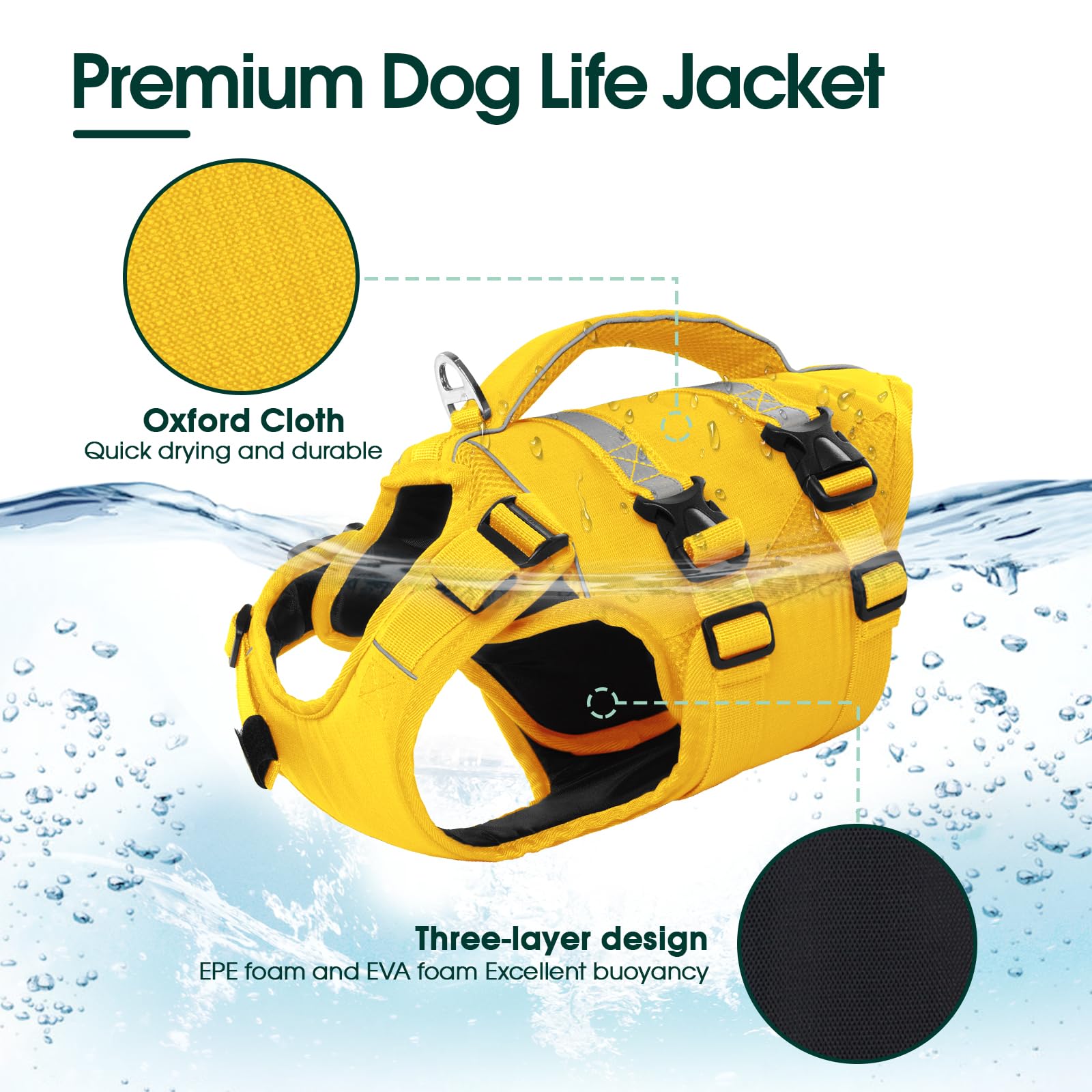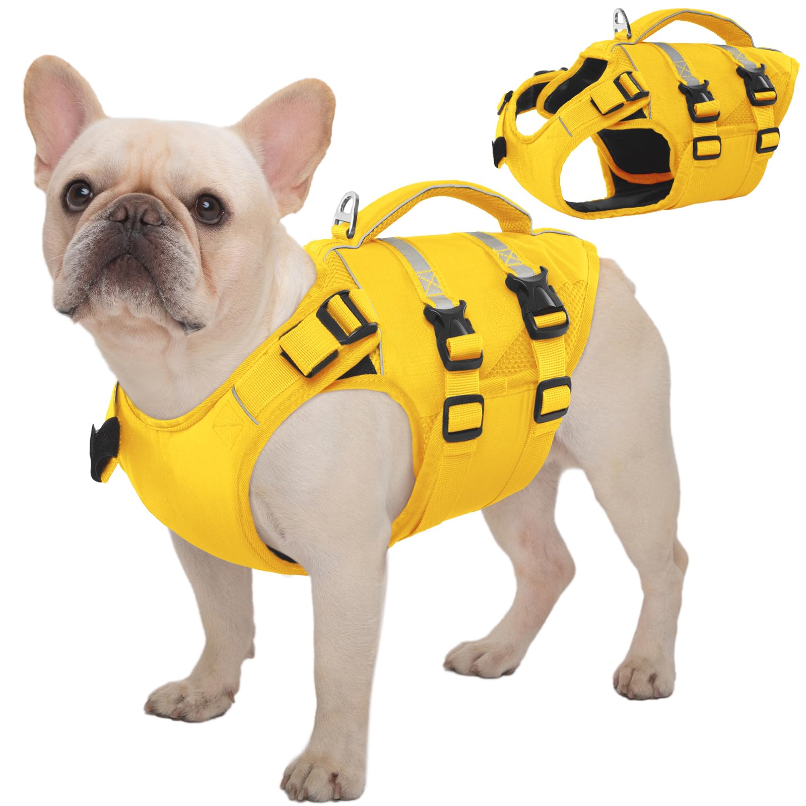 Dog Life Jacket, High Flotation Dog Life Vest for Swimming Boating, Adjustable Ripstop Pet Lifesaver