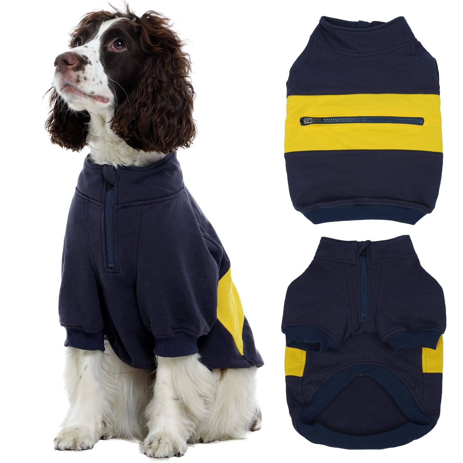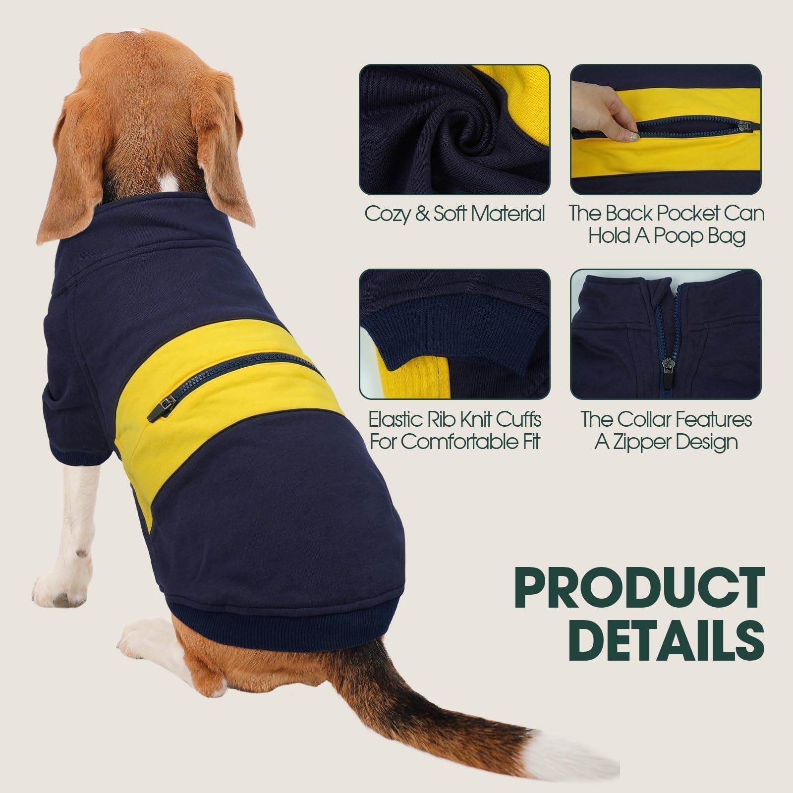 • Adjustable Neckline: Our dog hoodie boasts an adjustable half-zip at the neckline, enabling your dog to find the right fit. This ensures a secure and comfortable fit, effectively blocking out cold air for extra warmth during chilly weather